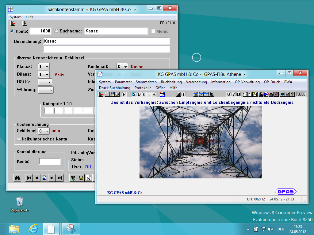 So sieht's aus: GPAS-FiBu unter Windows 8. |