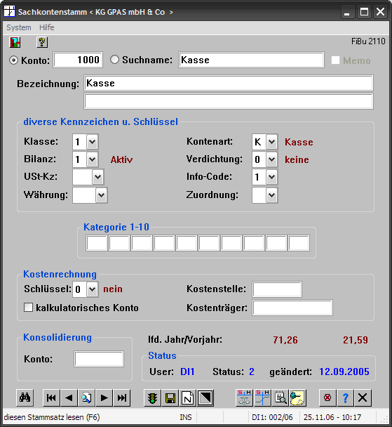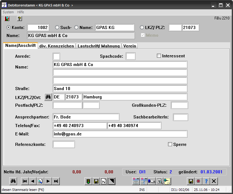 Die Kontonummern sind durchgängig siebenstellig (intern neunstellig) ausgelegt, so daß jeweils 10 Mio. (minus 1) Stammdaten angelegt werden können. Alternative Suchbegriffe sind optional.