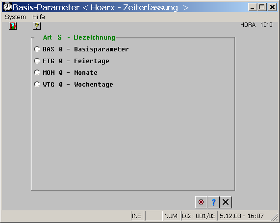 Basisparameterzusammengefasst. Hier werden festgelegt: