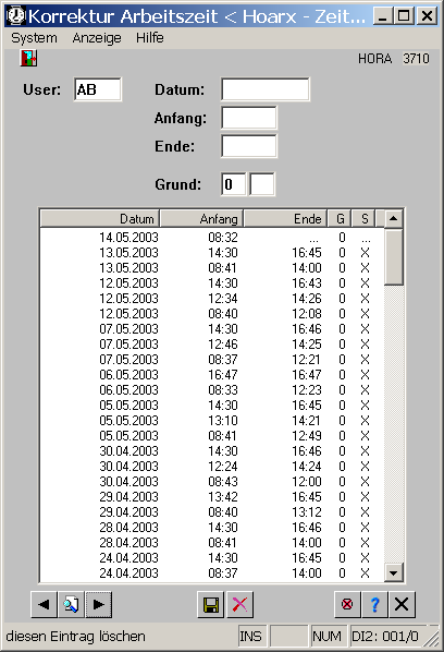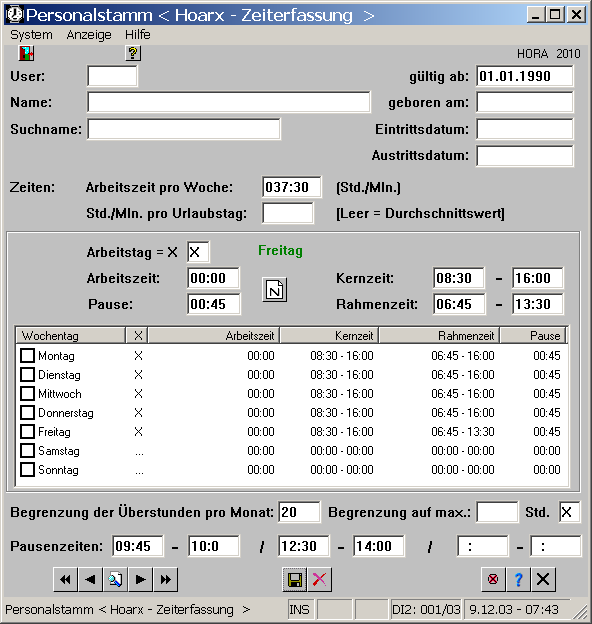 Ist das Feld 'MitarbeiterIn' nicht gefüllt, werden die allgemeinen Zeiten der Firma verwaltet.