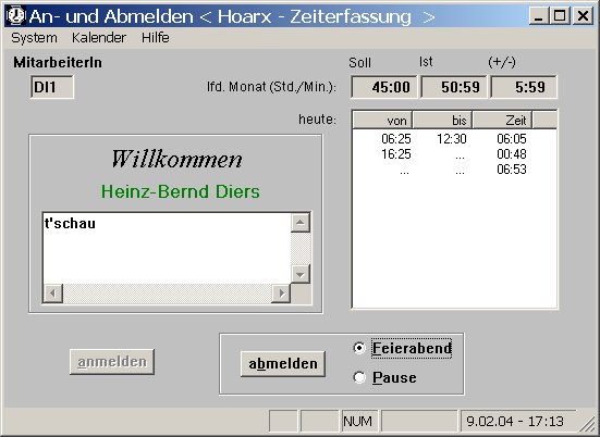 Das An- und Abmelden ist (ggf. neben dem Programm "Anwesende") das einzige, mit dem ein(e) Mitarbeiter(In) außerhalb der Lohnbuchhaltung in Berührung kommt.