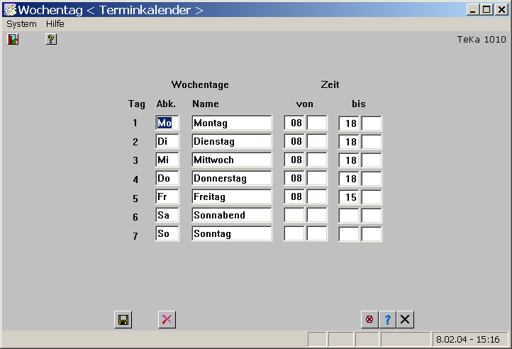 - Wochentage und Bürozeiten .